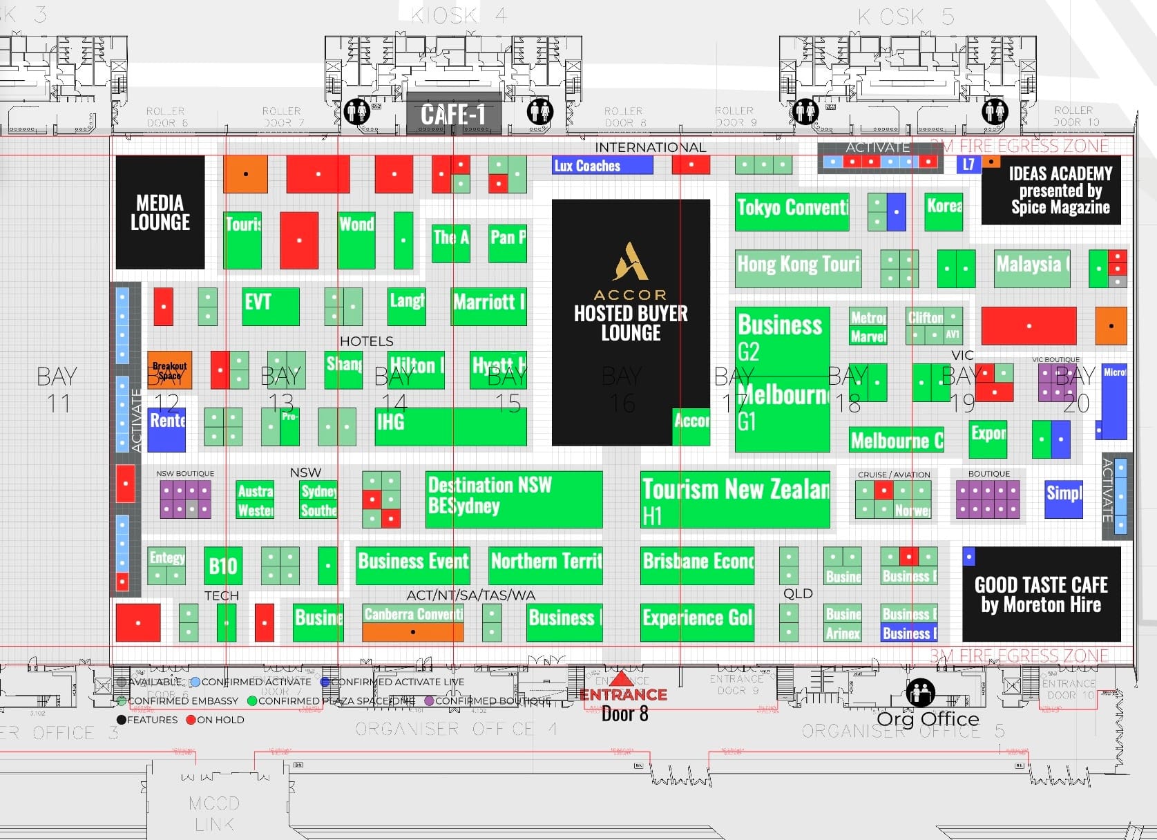 - Venue Walls & Bay Numbers Layer: Highlighting hall walls and bay numbers.